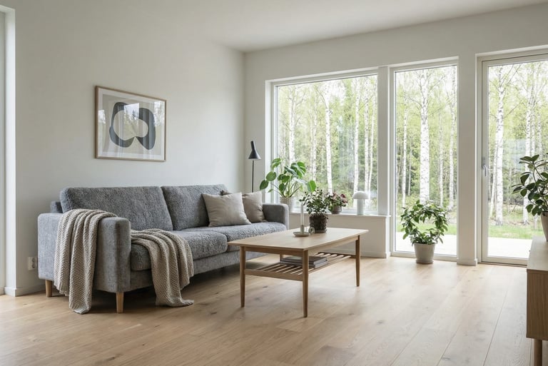 Svarbus ir bendras vizualinis balansas. Baldai, tekstilė ir detalės turėtų atrodyti tvarkingai, simetriškai ir logiškai išdėstyti. Net nedideli pakeitimai, tokie kaip pagalvių ištiesinimas ar kėdžių sulygiavimas, gali reikšmingai pagerinti galutinį rezultatą.